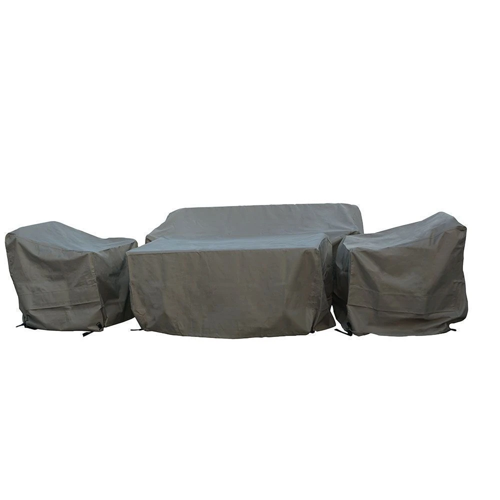 Protect your garden furniture and the prolong its life with the 3 Seater Sofa Suite Furniture Cover, including a 3 seater sofa cover, 2 sofa chair covers and a rectangular table cover. Made from a durable and tear resistant Ripstop fabric material, this cover has a Weathersure water repellent coating and waterproof seams, helping you to save your furniture from the rain. The mesh air vents help to prevent trapped moisture so that mould is less likely to affect your garden furniture. This UV resistant cover can be fitted easily onto your furniture and can be secured using heavy duty fastenings and a drawstring cord lock, helping to further protect your furniture from dirt and debris. When you are using your furniture, it is best to store your cover away ready for the next use within the drawstring storage bag included. This furniture cover is compatible with the following sets: Blenheim, Chatsworth, Chedworth, Monterey and Monte Carlo as well as related dual height table sets.