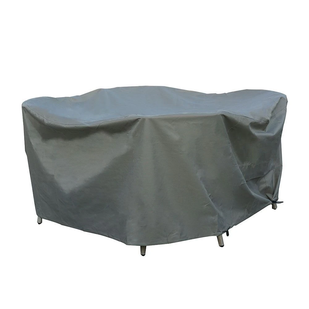 Protect your garden furniture and the prolong its life with the 4 Seater Round Suite Furniture Cover. Made from a durable and tear resistant Ripstop fabric material, this cover has a Weathersure water repellent coating and waterproof seams, helping you to save your furniture from the rain. The mesh air vents help to prevent trapped moisture so that mould is less likely to affect your garden furniture. This UV resistant cover can be fitted easily onto your furniture and can be secured using heavy duty fastenings and a drawstring cord lock, helping to further protect your furniture from dirt and debris. When you are using your furniture, it is best to store your cover away ready for the next use within the drawstring storage bag included. This furniture cover is compatible with the following sets: 4 Seater Round Suites from the Blenheim, Chatsworth, Chedworth, Monterey and Monte Carlo ranges.