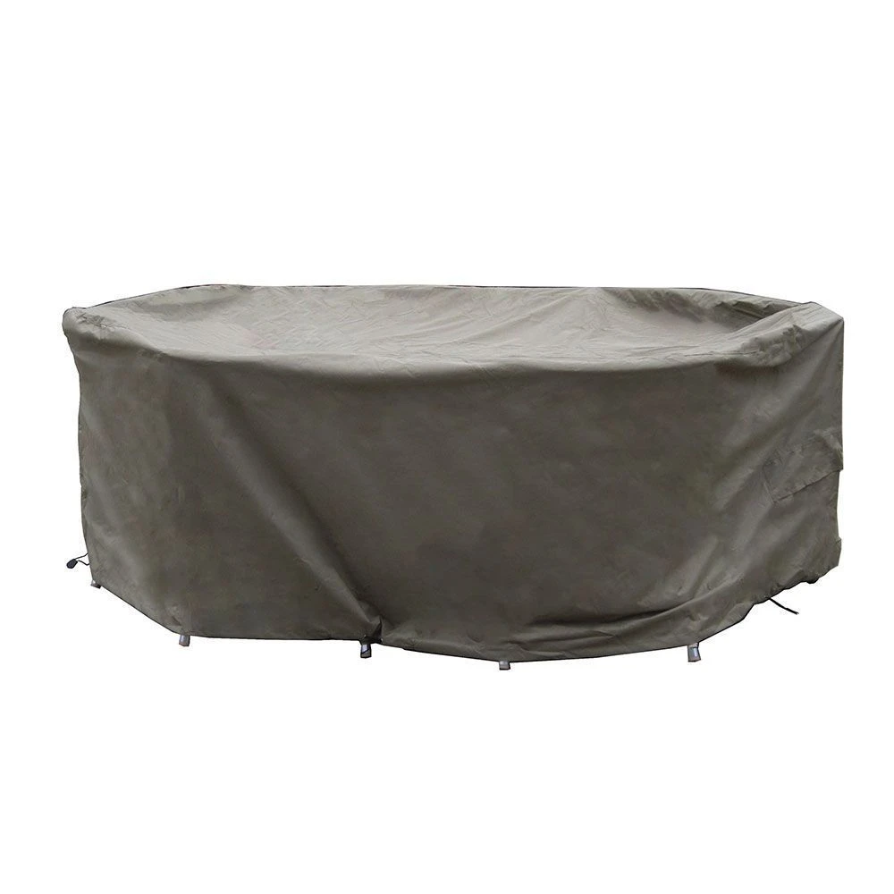 Protect your garden furniture and the prolong its life with the 6 Seater Elliptical Dining Set Furniture Cover. Made from a durable and tear resistant Ripstop fabric material, this cover has a Weathersure water repellent coating and waterproof seams, helping you to save your furniture from the rain. The mesh air vents help to prevent trapped moisture so that mould is less likely to affect your garden furniture. This UV resistant cover can be fitted easily onto your furniture and can be secured using heavy duty fastenings and a drawstring cord lock, helping to further protect your furniture from dirt and debris. When you are using your furniture, it is best to store your cover away ready for the next use within the drawstring storage bag included. This furniture cover is compatible with the following sets: 6 Seater Eilliptical Dining Sets from the Blenheim, Chatsworth, Chedworth and Monterey ranges.