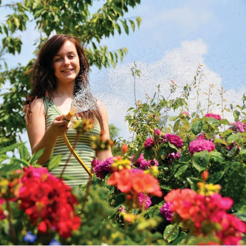 The Hozelock Hose Nozzle with Waterstop connector gives you an adjustable spray nozzle that goes from a fine spray to a hard jet with a twist of a hand. The male click connector fits with any female click connector and a waterstop female connector is supplied. The waterstop connector allows you to remove the nozzle without water continuing to gush out. Great for changing nozzles and accessories without water wastage and wet feet!