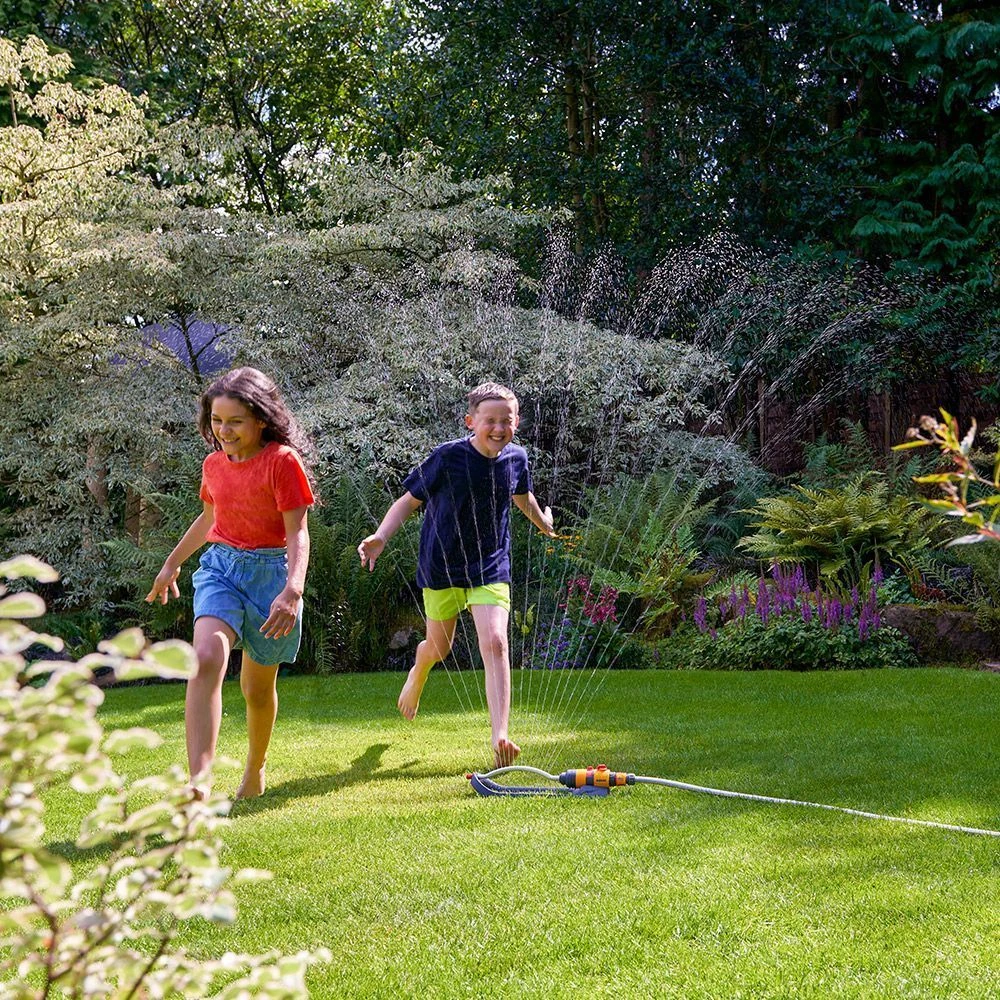 The Hozelock Rectangular Sprinkler Plus 220 Sqm covers an area of 220 Sqm and has water driven sprinklers which oscillate forwards and backwards giving even coverage across the area. The water bar can be set to water a full rectangle shape or use the setting rings to decide what angle you would like watered. Great for lawns or large flower beds and borders.