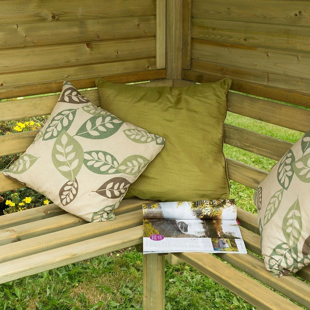Bring a touch of elegance and finesse your garden with the Venetian Corner Arbour. With a homely corner contemporary design, this arbour has solid tongue and groove panels in the corner giving you a sense of privacy whilst relaxing. The apex roof helps give showers at bay from the fitted seating area. This flat packed arbour is 250cm high with a width of 233cm and a depth of 161cm and is made from sustainable certified Timber. This arbour is supplied flatpacked for home assembly and unpainted.